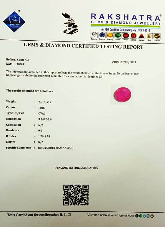 | SPECIFIC COMMENTS: | BURMA RUBY {MAYANMAR} |