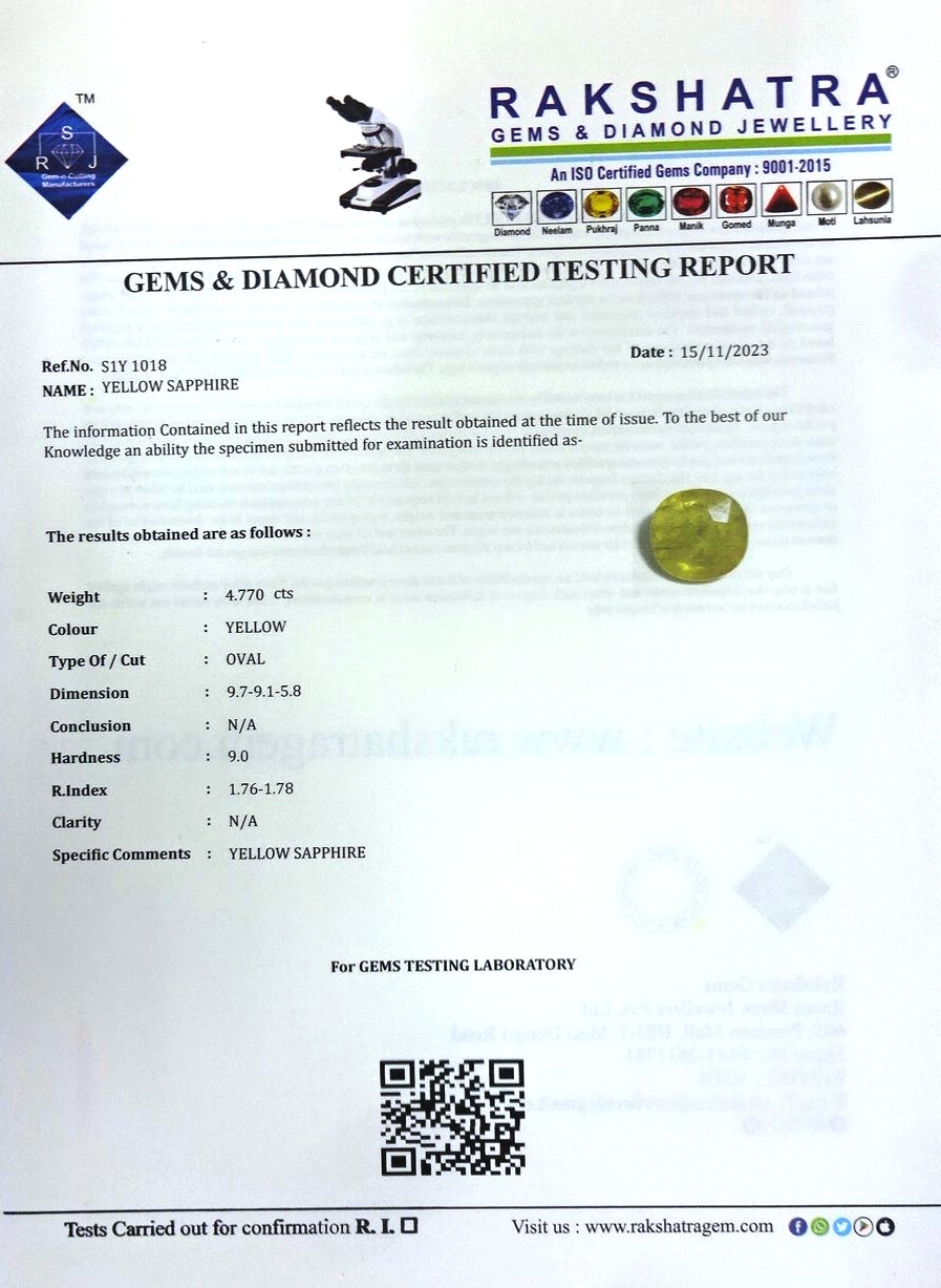 | SPECIFIC COMMENTS: | YELLOW SAPPHIRE |