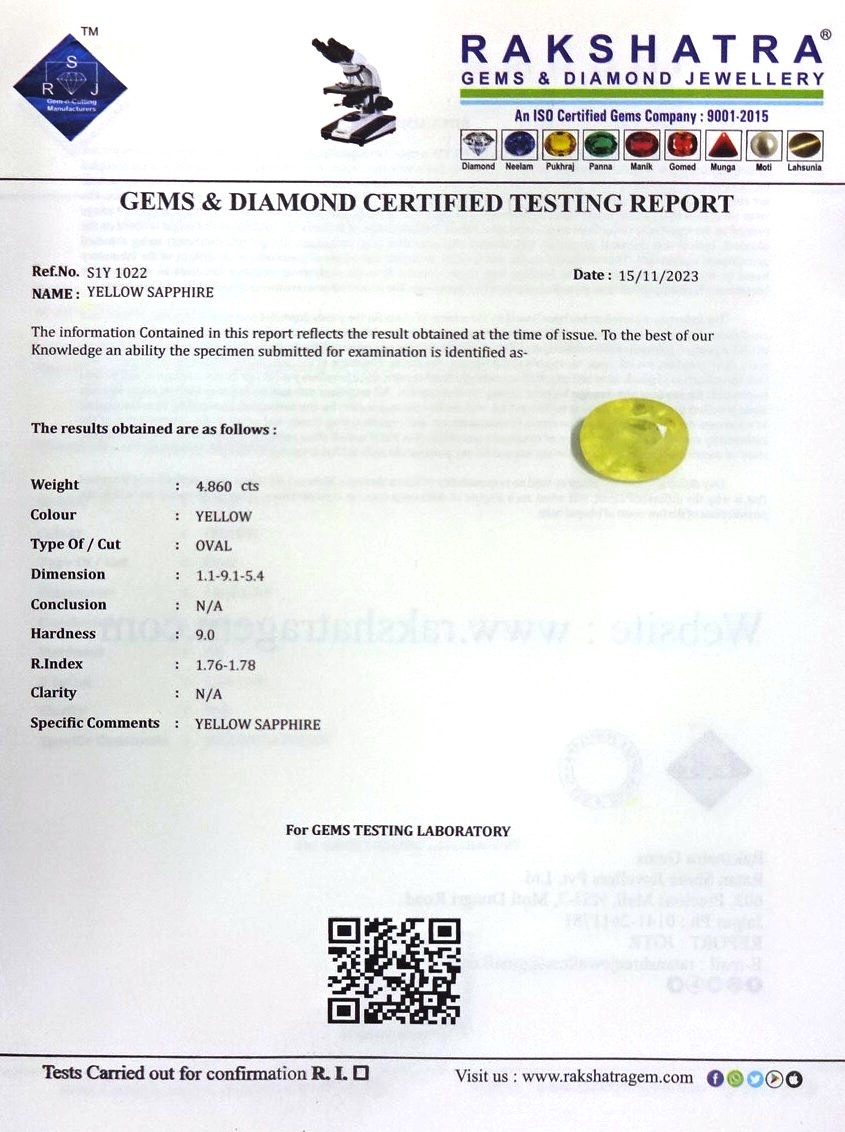 | SPECIFIC COMMENTS: | YELLOW SAPPHIRE |