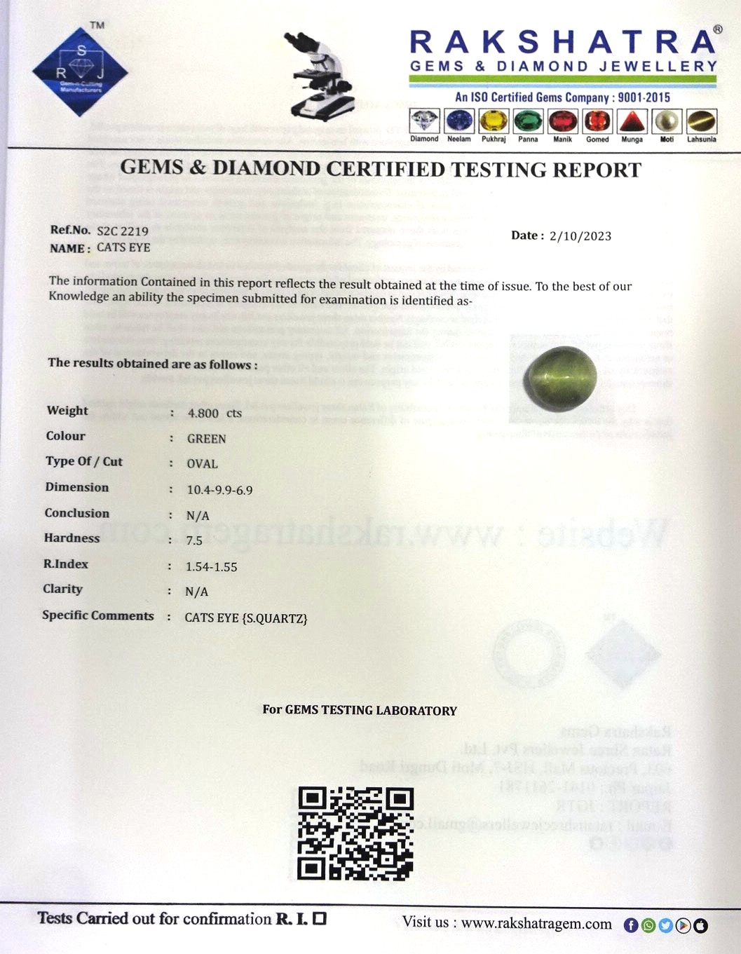 | SPECIFIC COMMENTS: | CATS EYE {S.QUARTZ} |