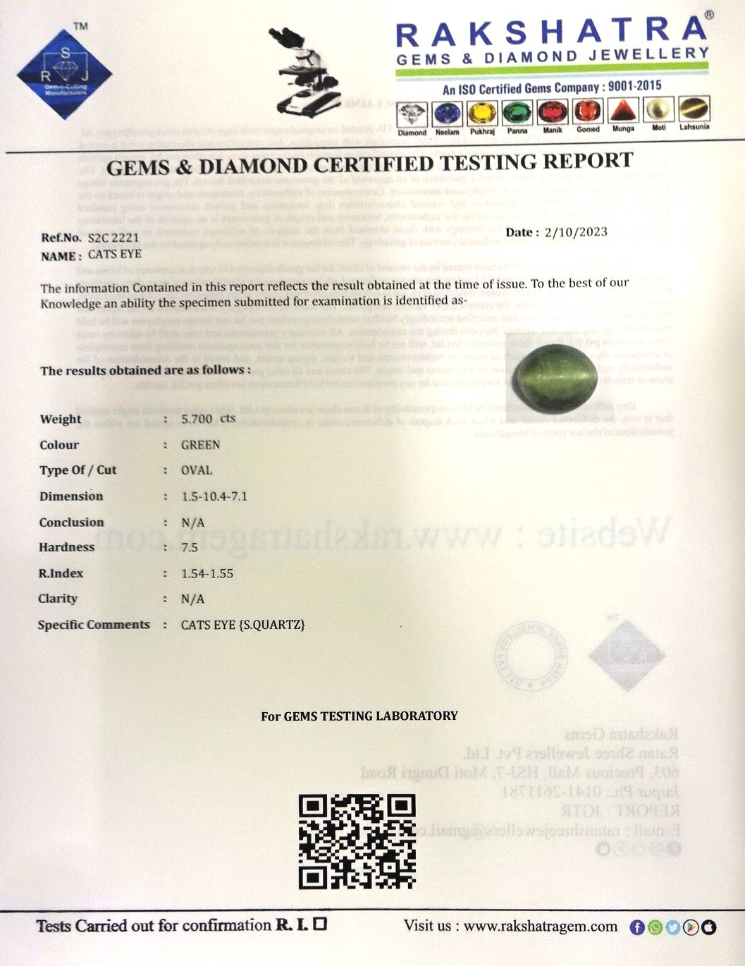 | SPECIFIC COMMENTS: | CATS EYE {S.QUARTZ} |