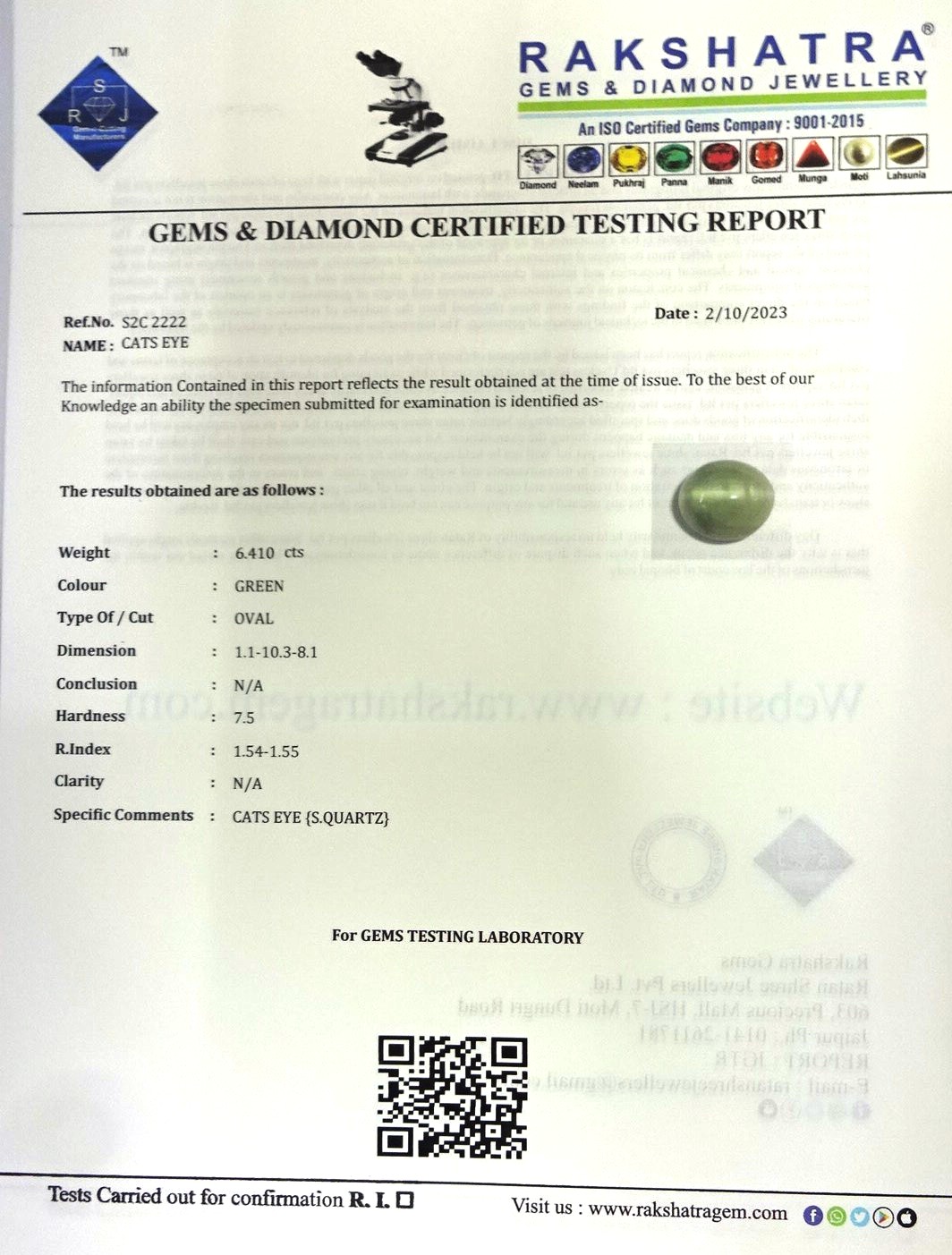 | SPECIFIC COMMENTS: | CATS EYE {S.QUARTZ} |