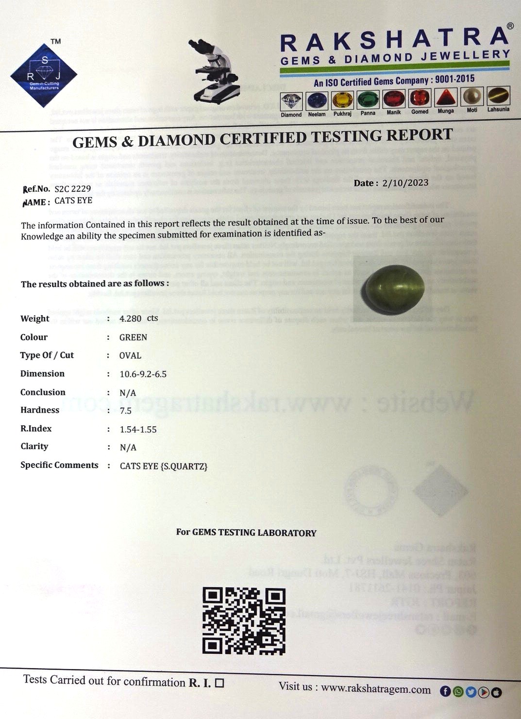 | SPECIFIC COMMENTS: | CATS EYE {S.QUARTZ} |
