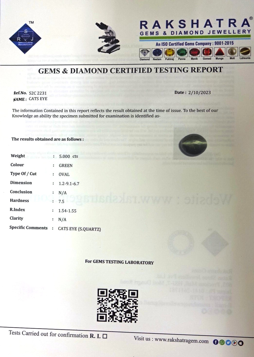 | SPECIFIC COMMENTS: | CATS EYE {S.QUARTZ} |