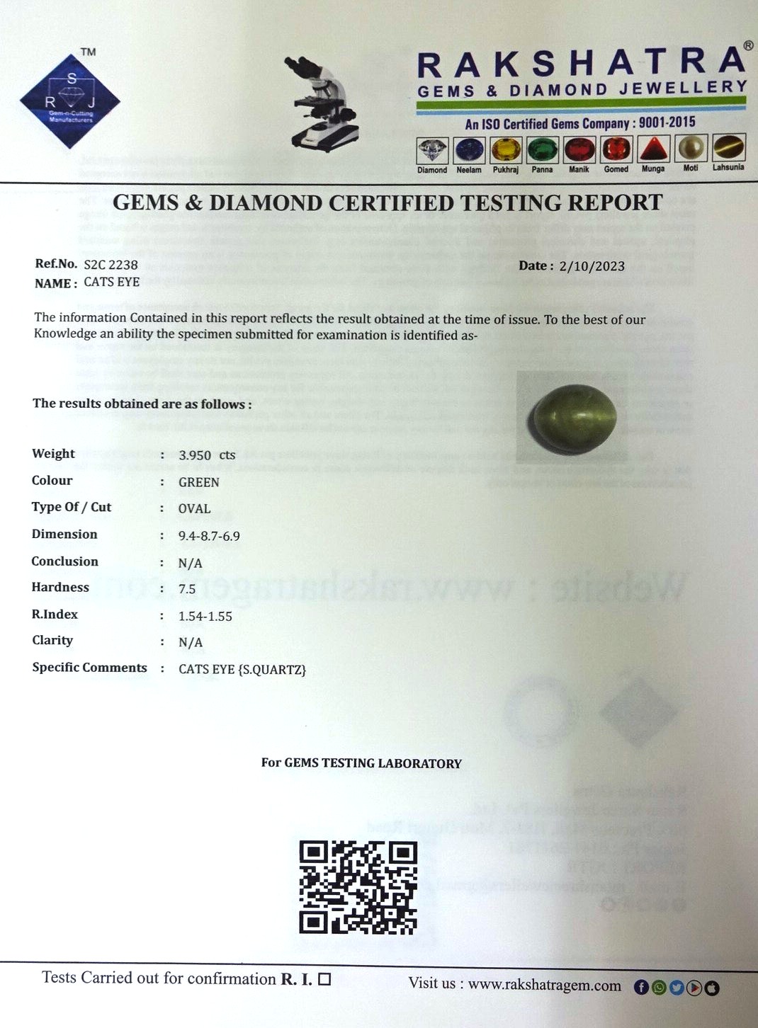 | SPECIFIC COMMENTS: | CATS EYE {S.QUARTZ} |