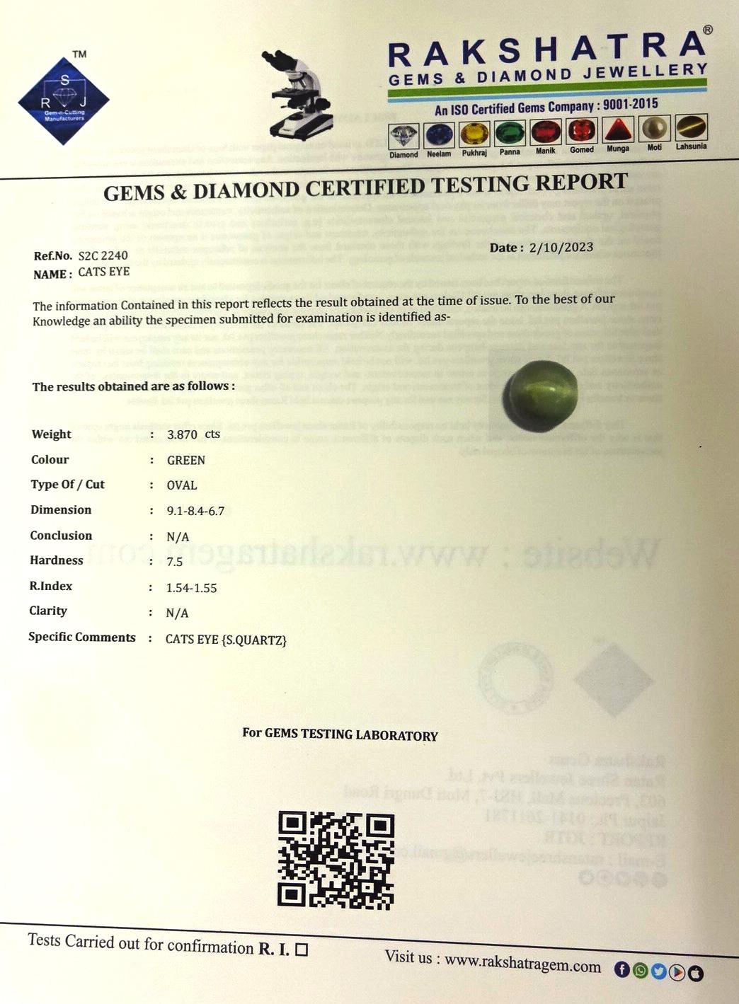 | SPECIFIC COMMENTS: | CATS EYE {S.QUARTZ} |