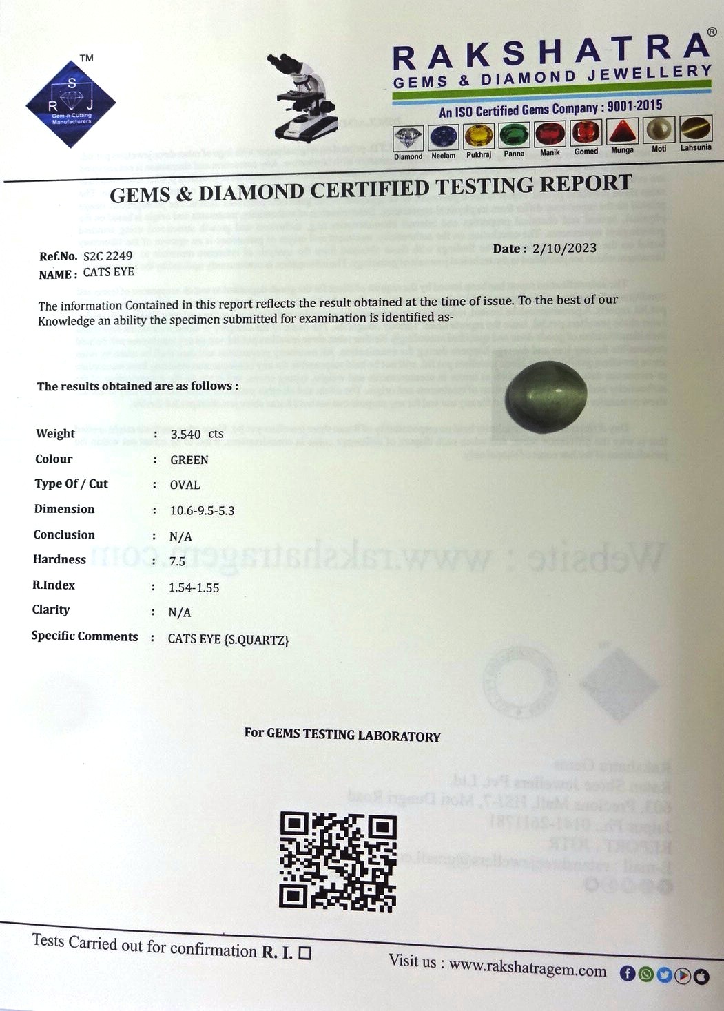 | SPECIFIC COMMENTS: | CATS EYE {S.QUARTZ} |