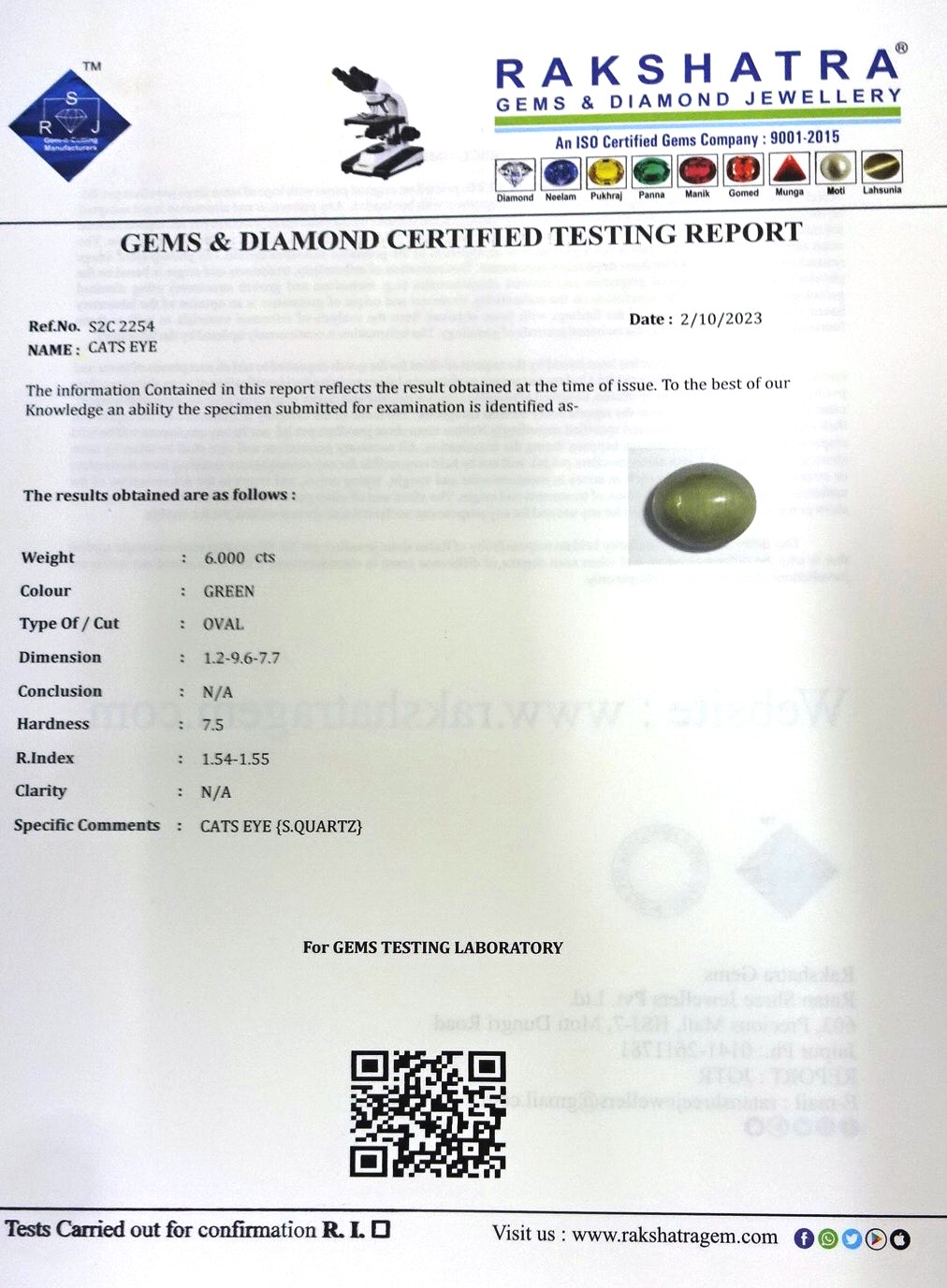 | SPECIFIC COMMENTS: | CATS EYE {S.QUARTZ} |