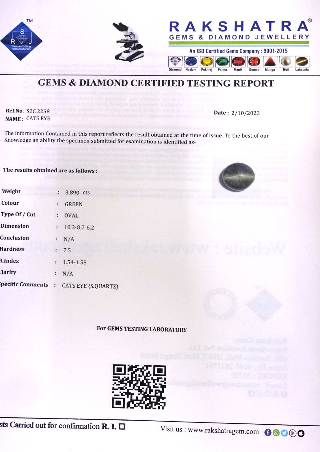 | SPECIFIC COMMENTS: | CATS EYE {S.QUARTZ} |