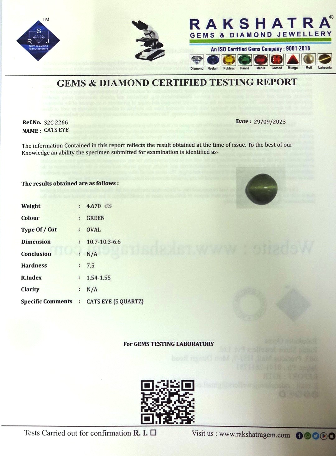 | SPECIFIC COMMENTS: | CATS EYE {S.QUARTZ} |