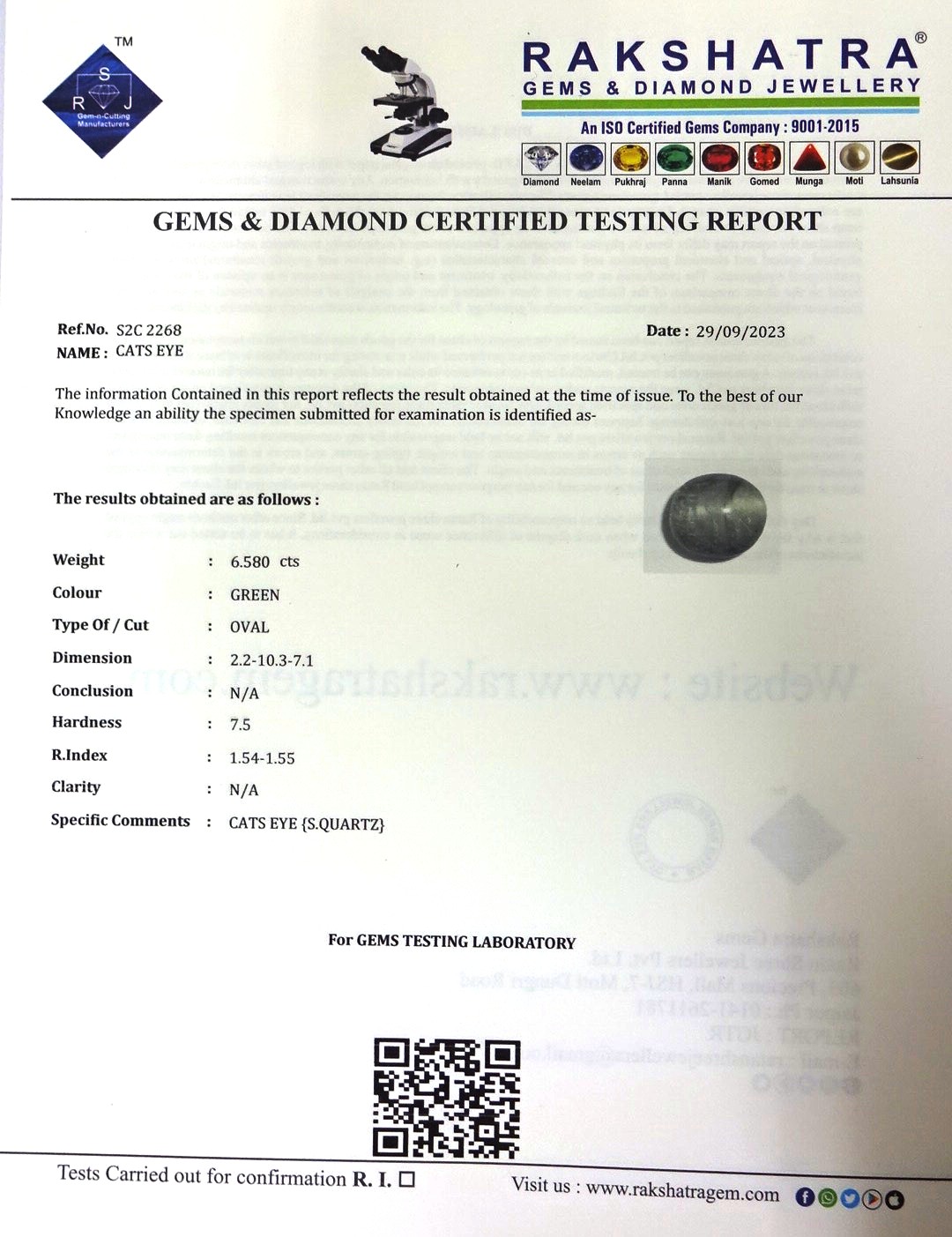 | SPECIFIC COMMENTS: | CATS EYE {S.QUARTZ} |