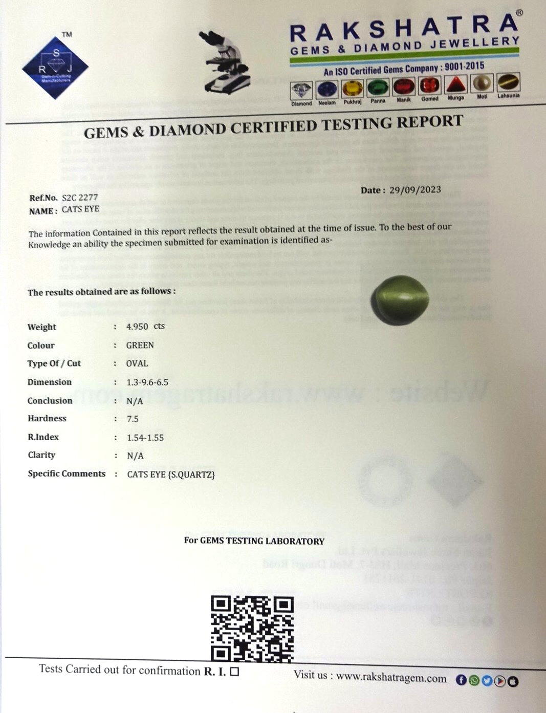 | SPECIFIC COMMENTS: | CATS EYE {S.QUARTZ} |