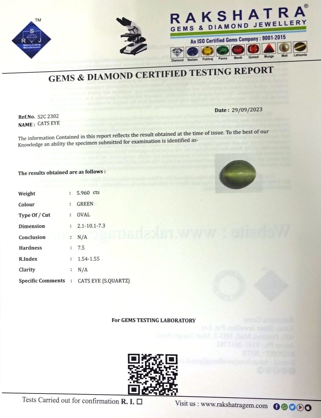 | SPECIFIC COMMENTS: | CATS EYE {S.QUARTZ} |