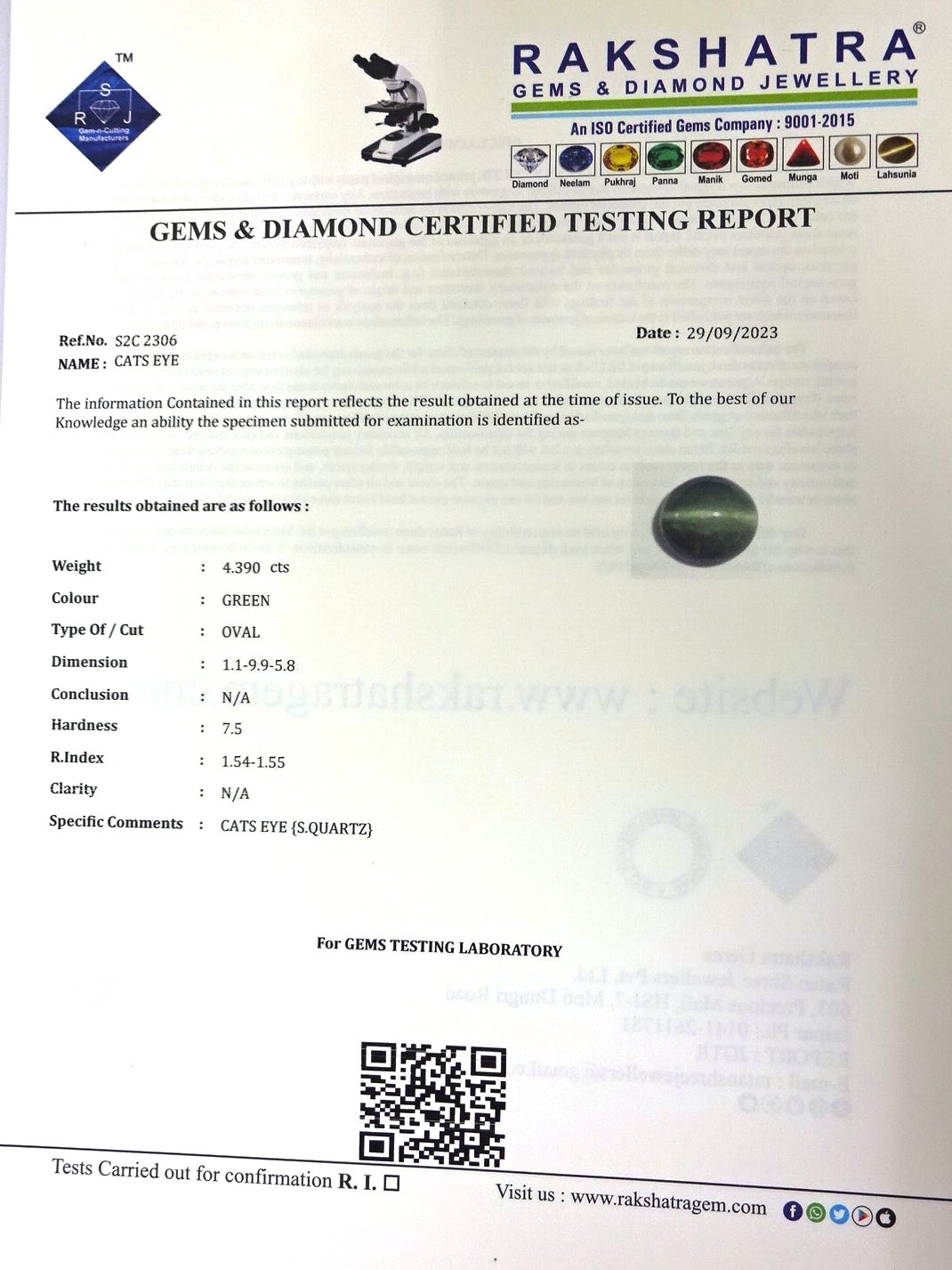 | SPECIFIC COMMENTS: | CATS EYE {S.QUARTZ} |