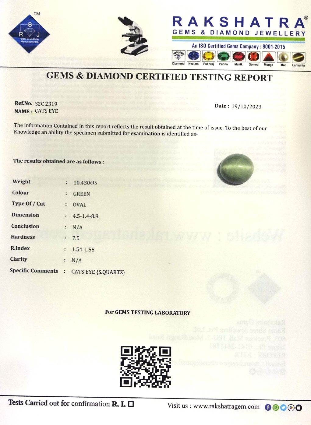 | SPECIFIC COMMENTS: | CATS EYE { S . QUARTZ } |