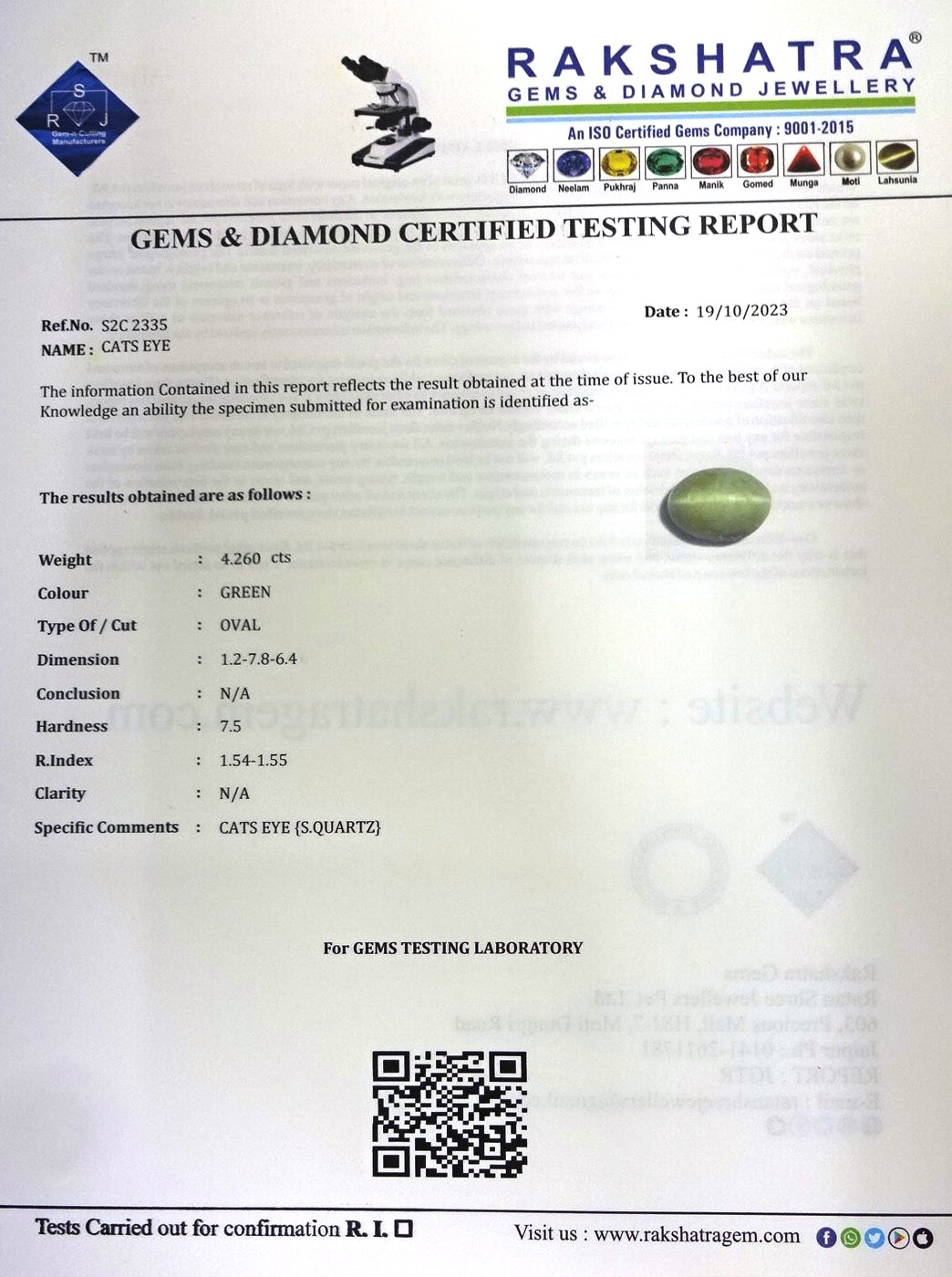 | SPECIFIC COMMENTS: | CATS EYE {S.QUARTZ}  |