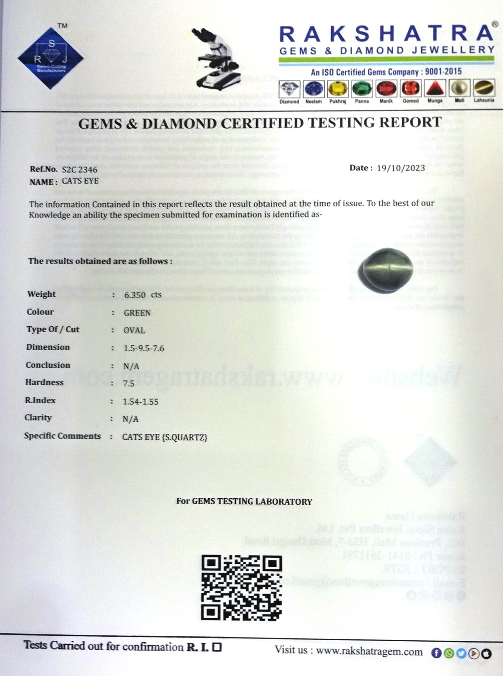 | SPECIFIC COMMENTS: | CATS EYE {S.QUARTZ} |