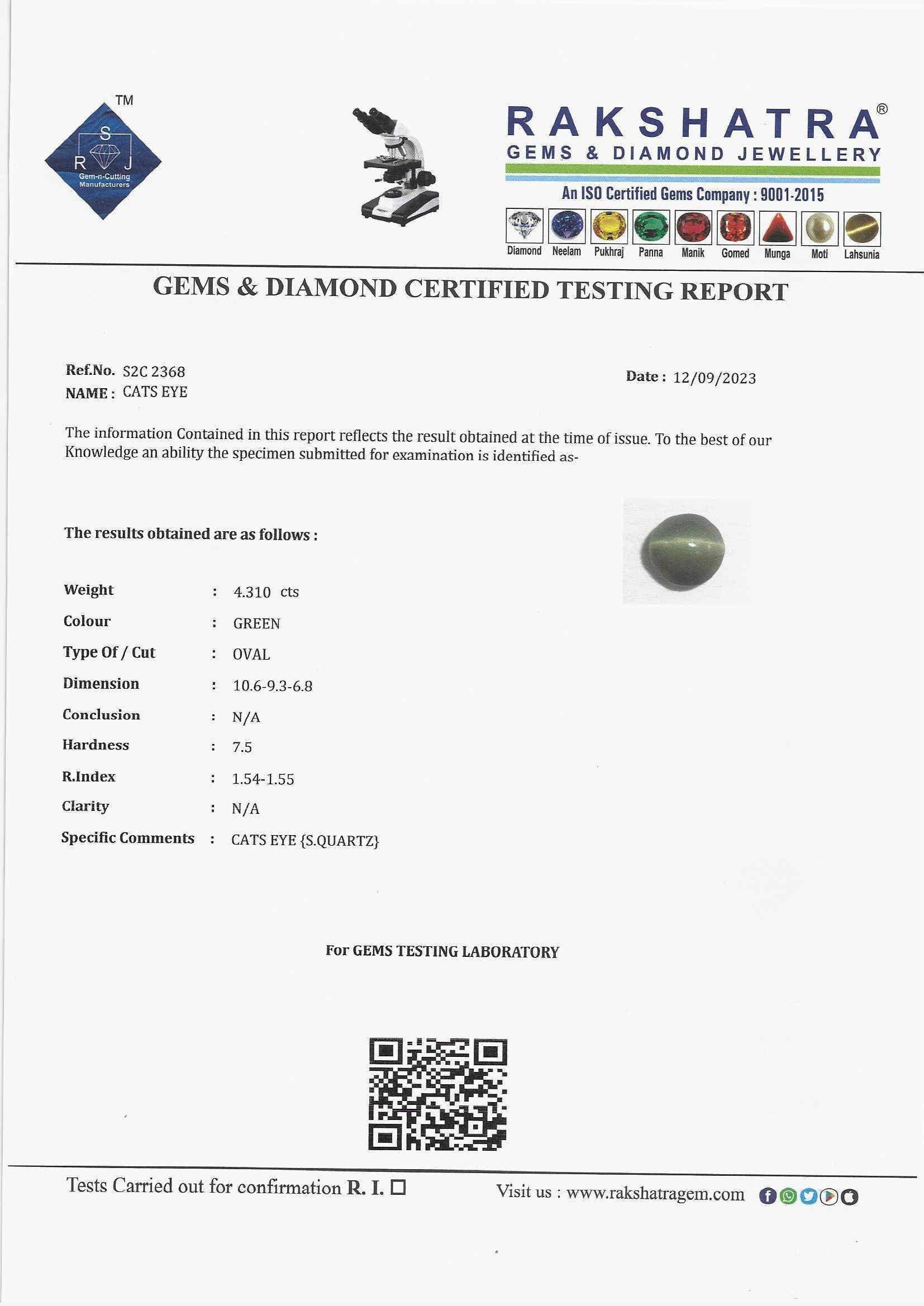 | SPECIFIC COMMENTS: | CATS EYE {S.QUARTZ} |