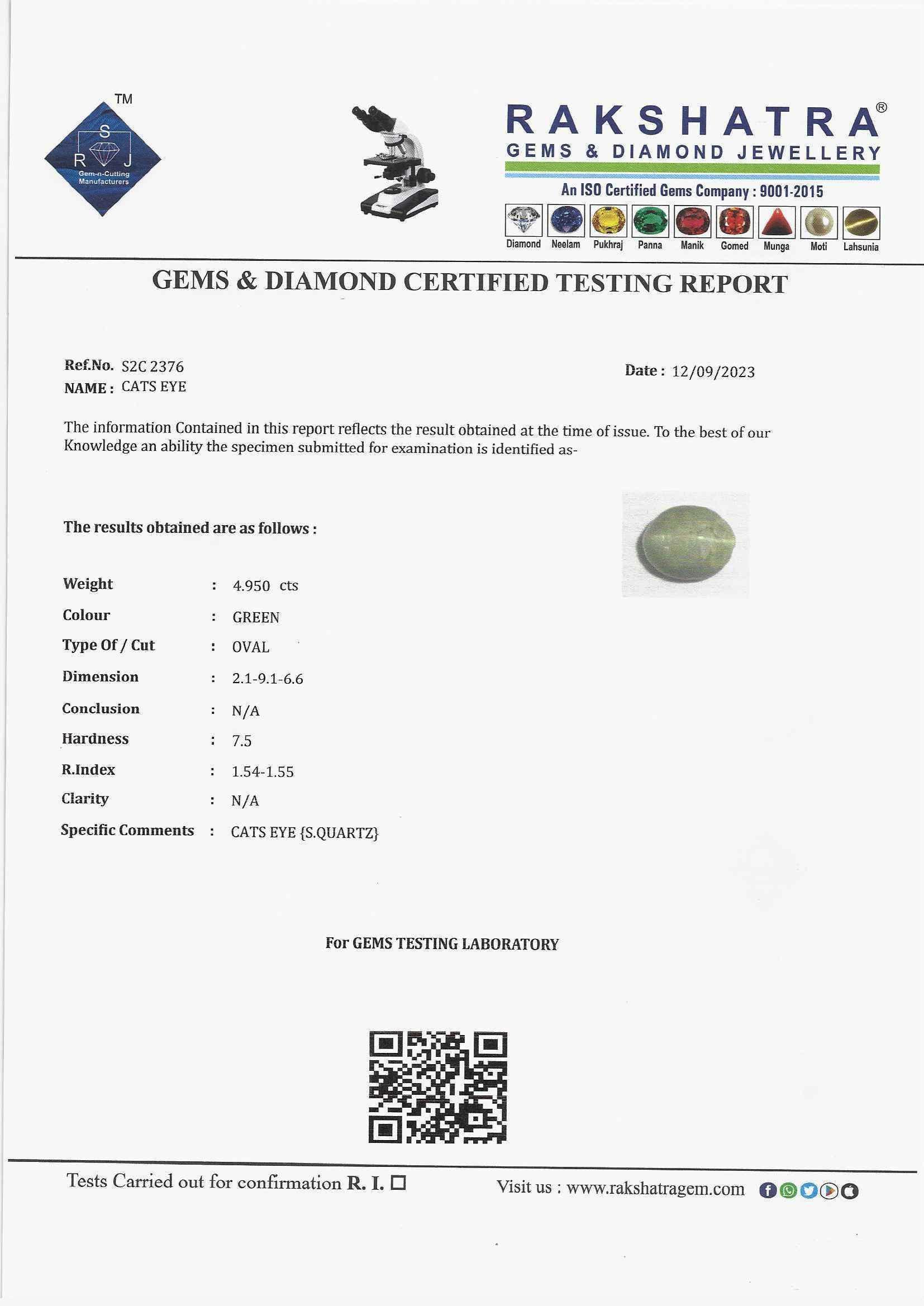 | SPECIFIC COMMENTS: | CATS EYE {S.QUARTZ} |