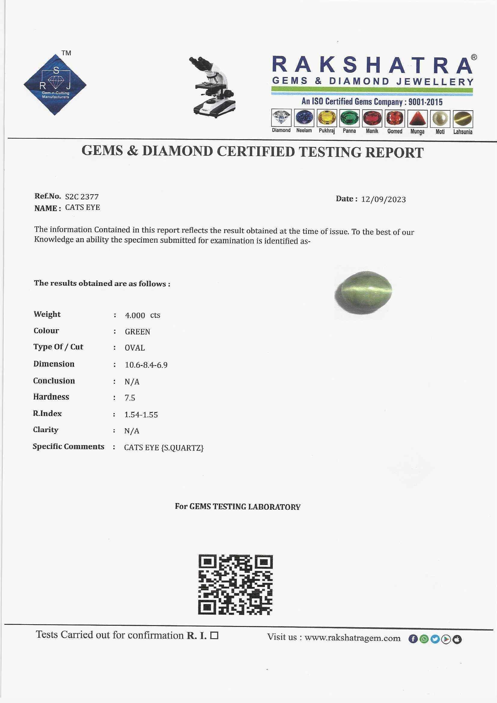 | SPECIFIC COMMENTS: | CATS EYE {S.QUARTZ} |