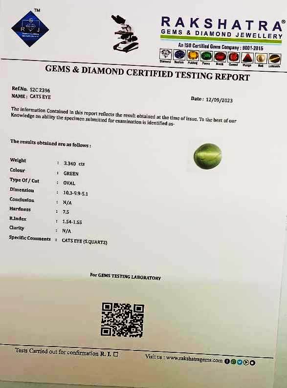 | SPECIFIC COMMENTS: | CATS EYE {S.QUARTZ} |