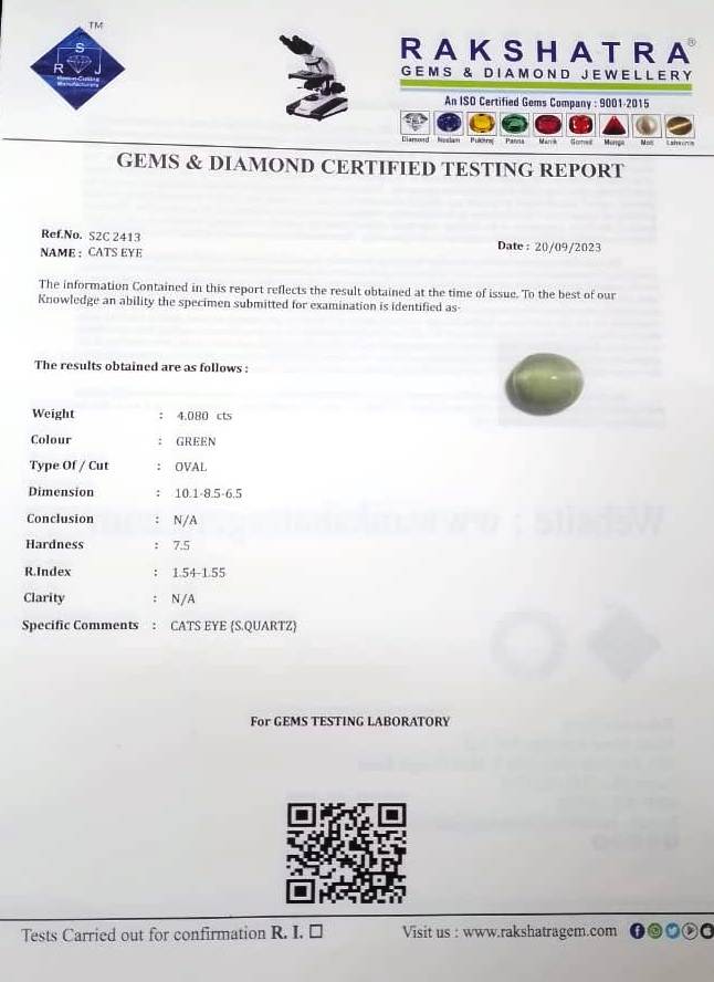 | SPECIFIC COMMENTS: | CATS EYE {S.QUARTZ} |