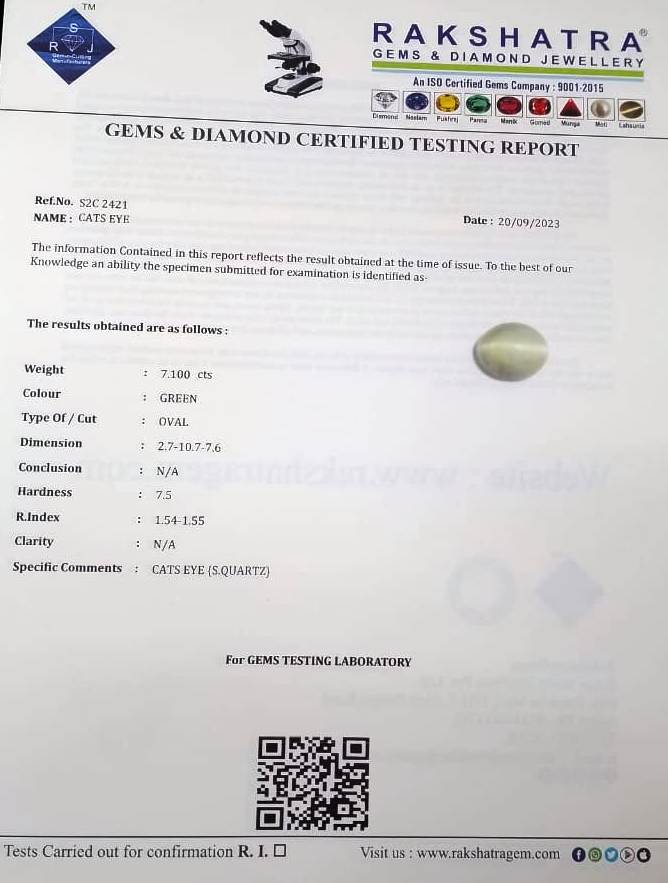 | SPECIFIC COMMENTS: | CATS EYE {S.QUARTZ} |