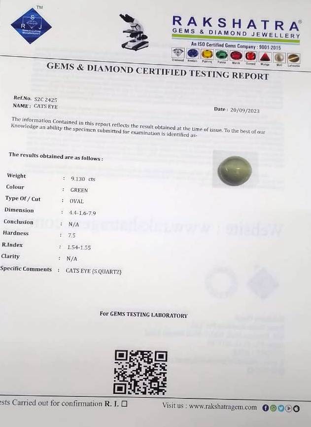 | SPECIFIC COMMENTS: | CATS EYE {S.QUARTZ} |