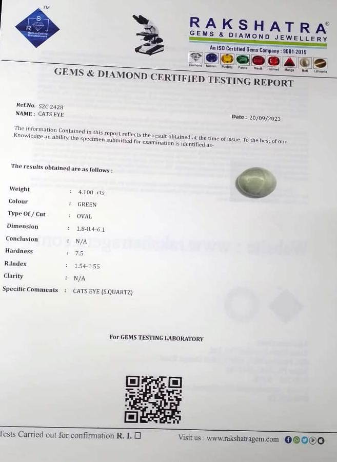 | SPECIFIC COMMENTS: | CATS EYE {S.QUARTZ} |