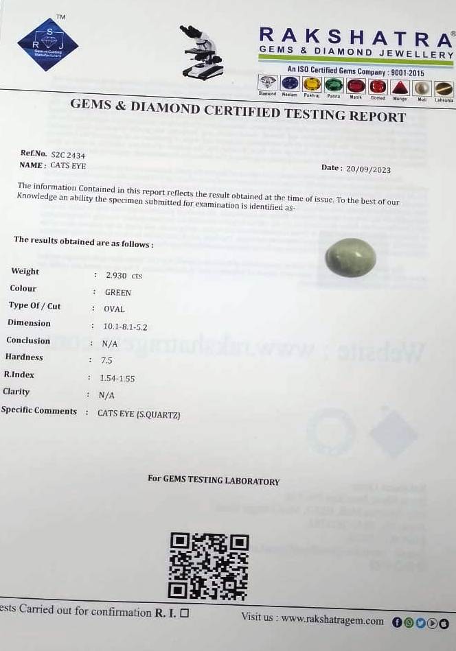 | SPECIFIC COMMENTS: | CATS EYE {S.QUARTZ} |