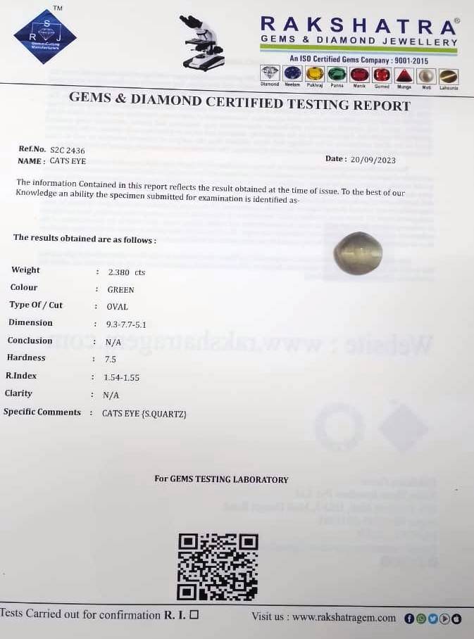 | SPECIFIC COMMENTS: | CATS EYE {S.QUARTZ} |