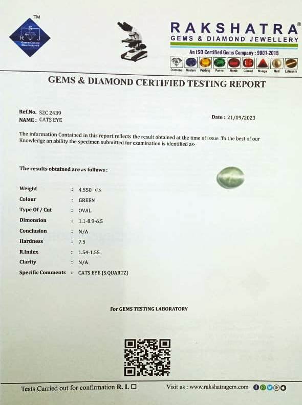 | SPECIFIC COMMENTS: | CATS EYE {S.QUARTZ} |