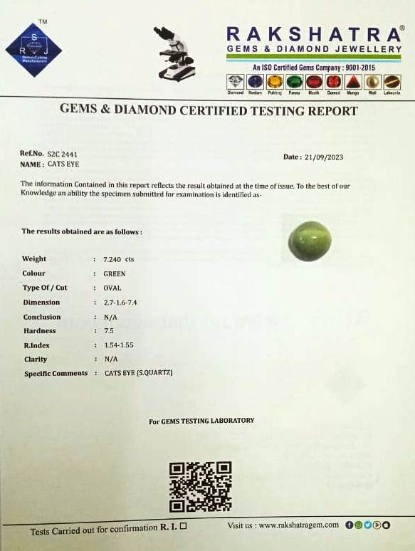 | SPECIFIC COMMENTS: | CATS EYE {S.QUARTZ} |