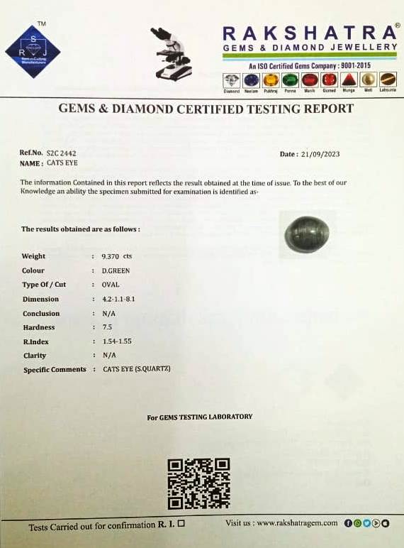 | SPECIFIC COMMENTS: | CATS EYE {S.QUARTZ} |