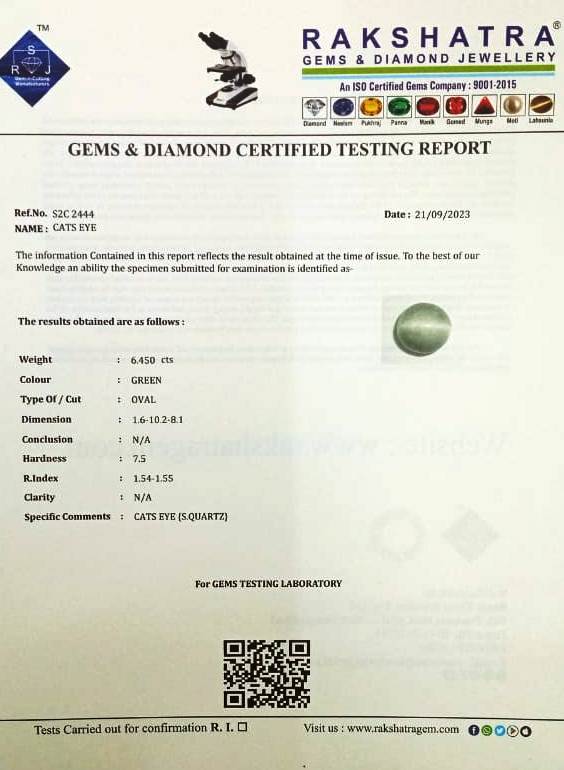 | SPECIFIC COMMENTS: | CATS EYE {S.QUARTZ} |