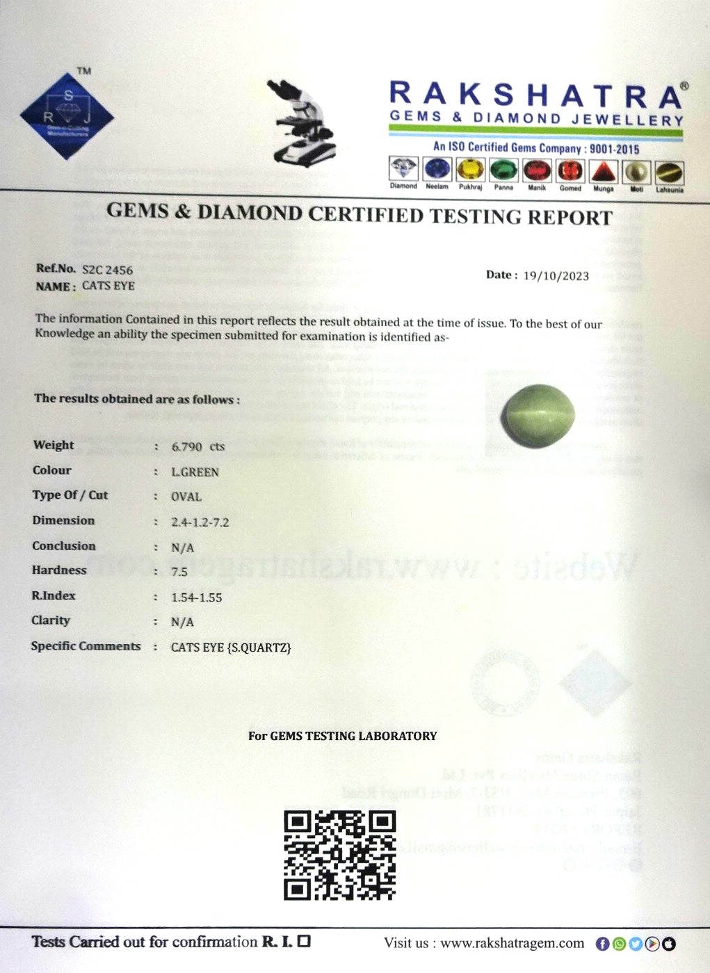 | SPECIFIC COMMENTS: | CATS EYE { S . QUARTZ } |