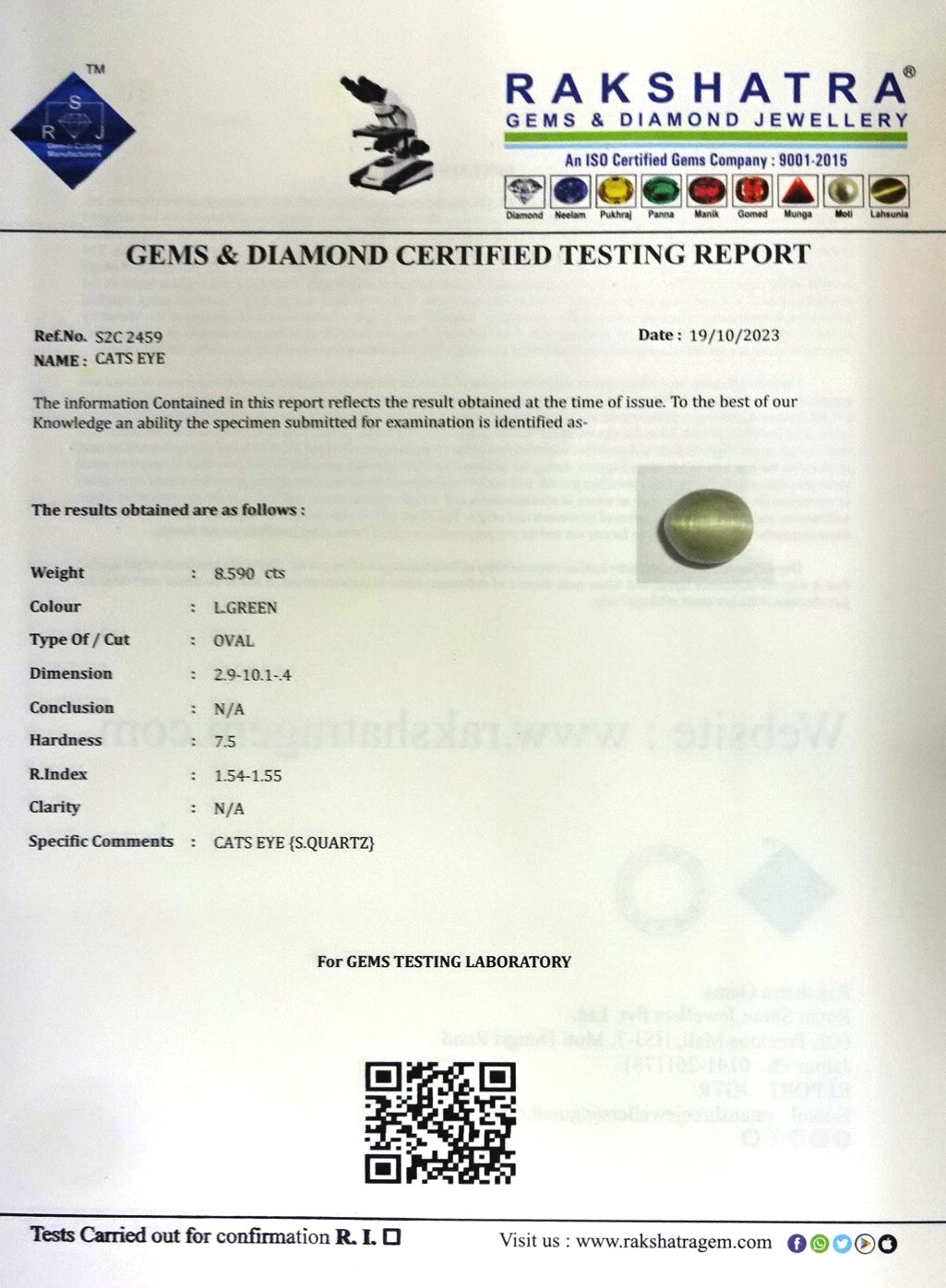 | SPECIFIC COMMENTS: | CATS EYE { S . QUARTZ }  |