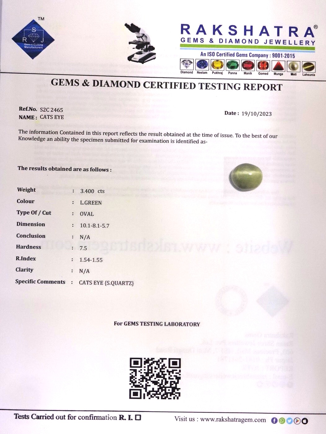 | SPECIFIC COMMENTS: | CATS EYE { S . QUARTZ }  |