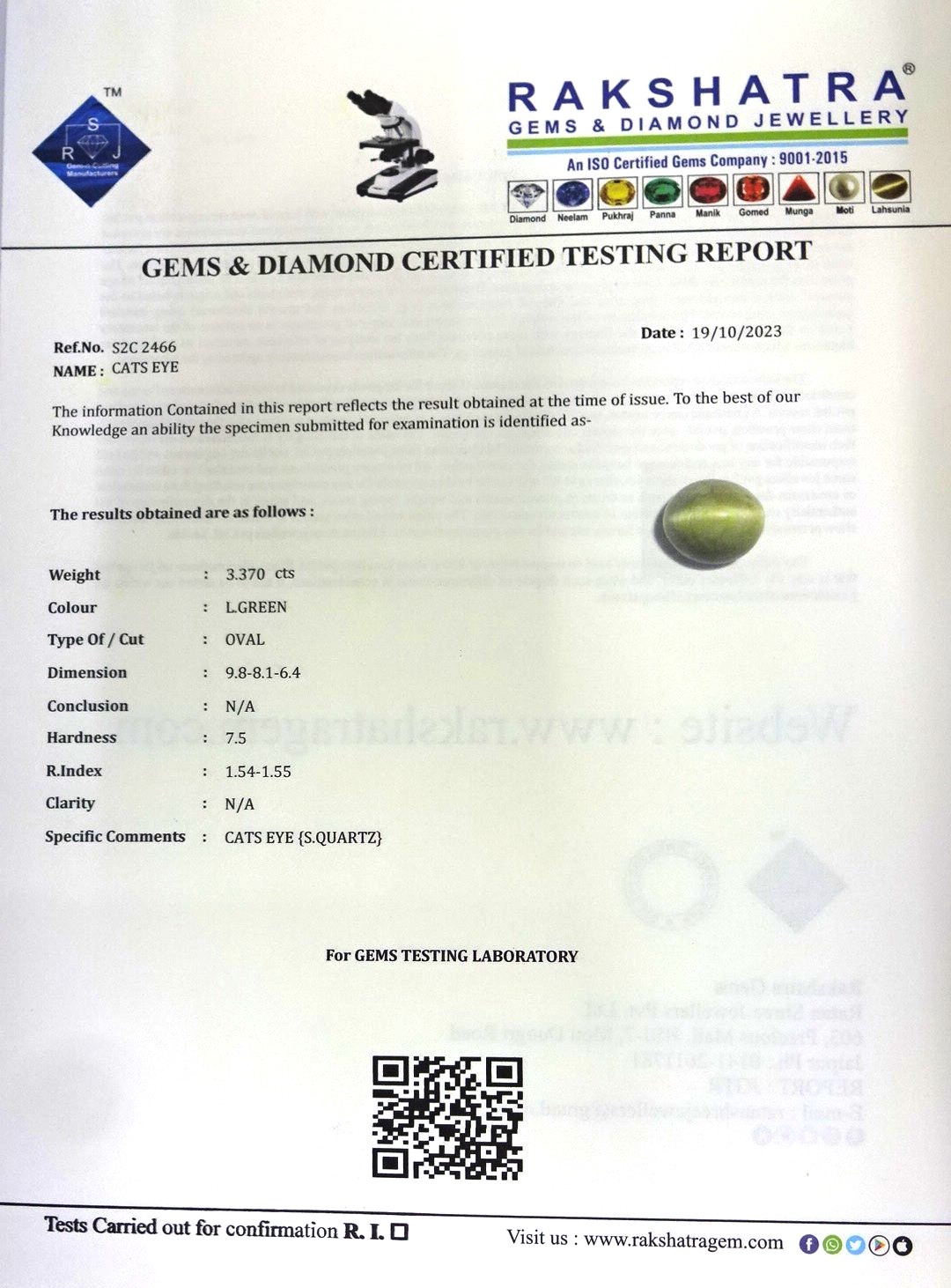 | SPECIFIC COMMENTS: | CATS EYE { S . QUARTZ }  |