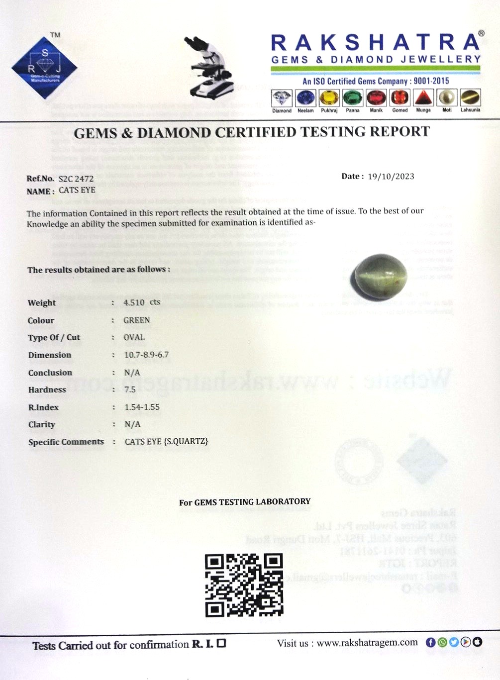 | SPECIFIC COMMENTS: | CATS EYE {S.QUARTZ} |