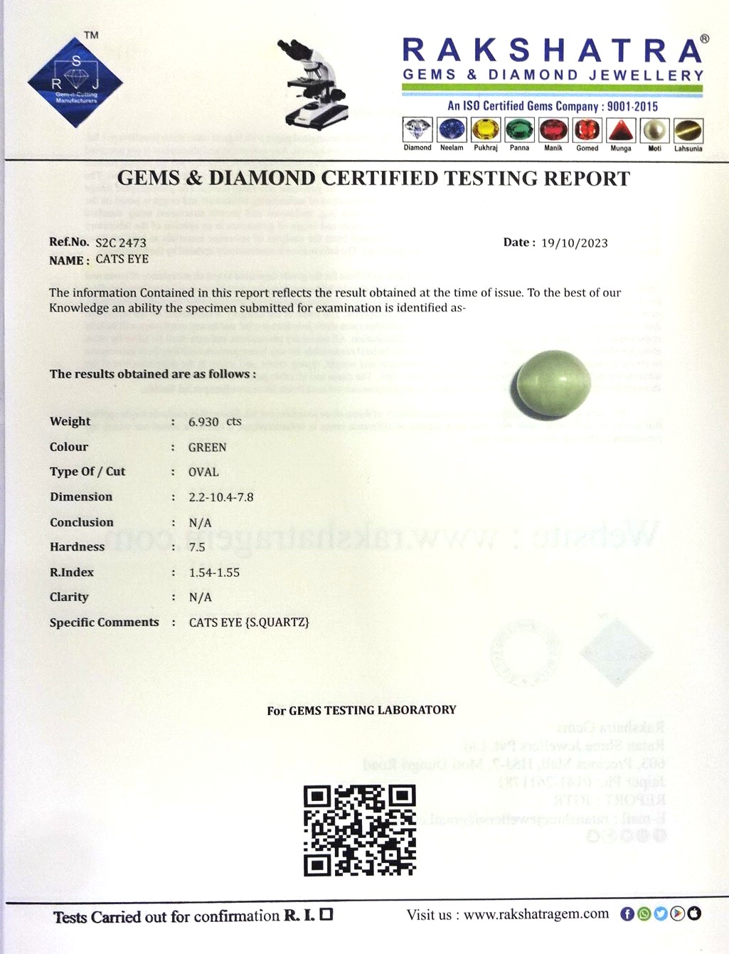 | SPECIFIC COMMENTS: | CATS EYE {S.QUARTZ} |