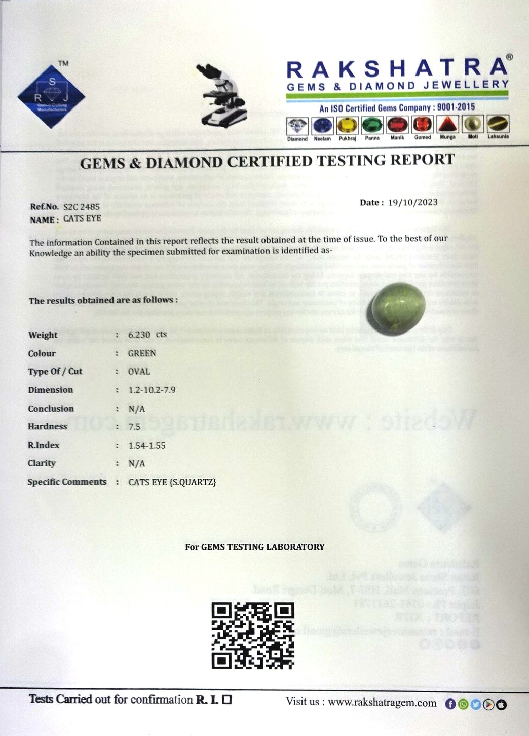 | SPECIFIC COMMENTS: | CATS EYE {S.QUARTZ} |