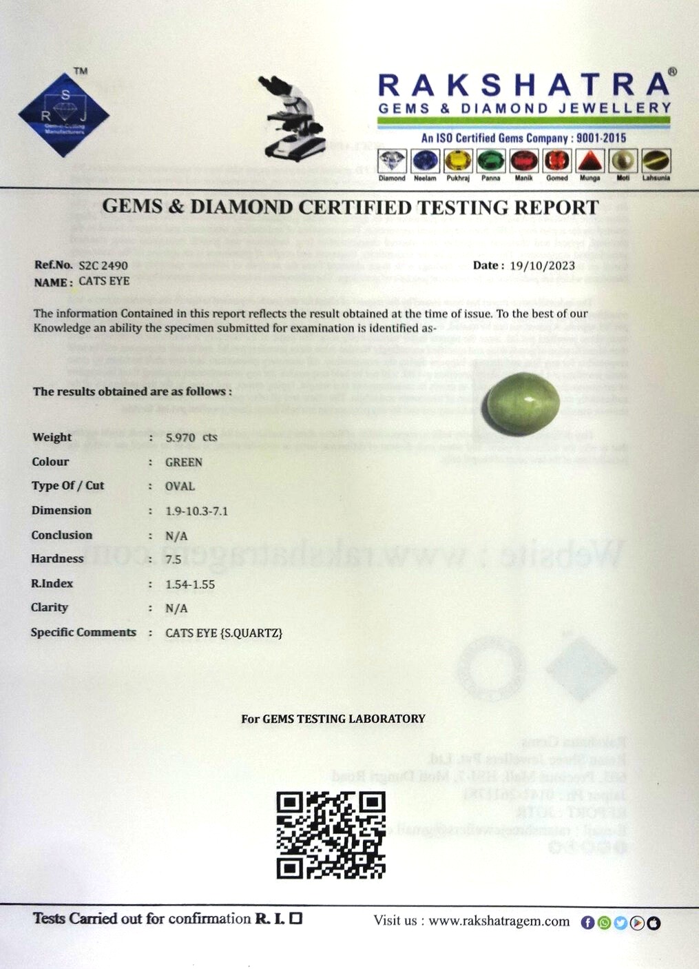 | SPECIFIC COMMENTS: | CATS EYE {S.QUARTZ} |