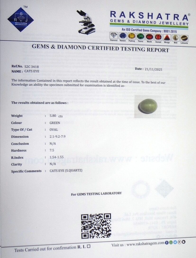 | SPECIFIC COMMENTS: | CATS EYE { S . QUARTZ } |