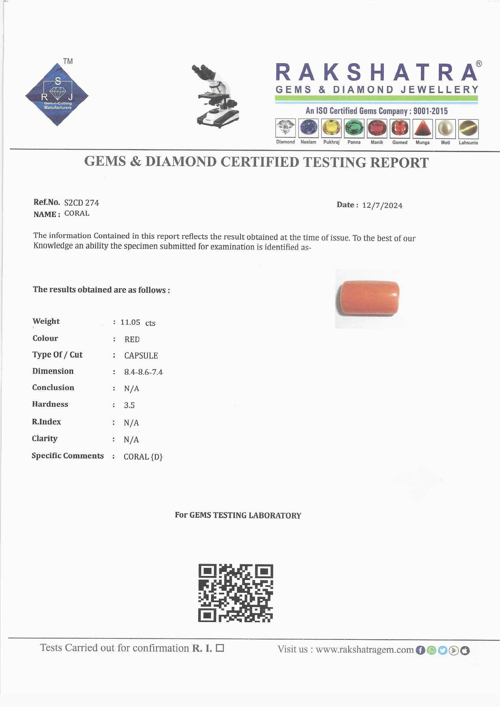 | WEIGHT: | 11.05 CTS |