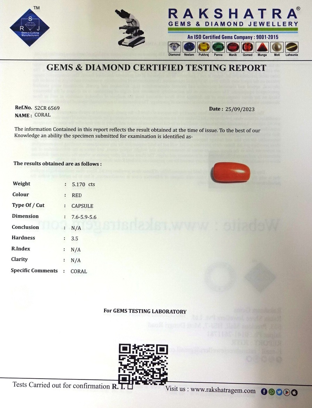 | WEIGHT: | 5.17 CTS |
