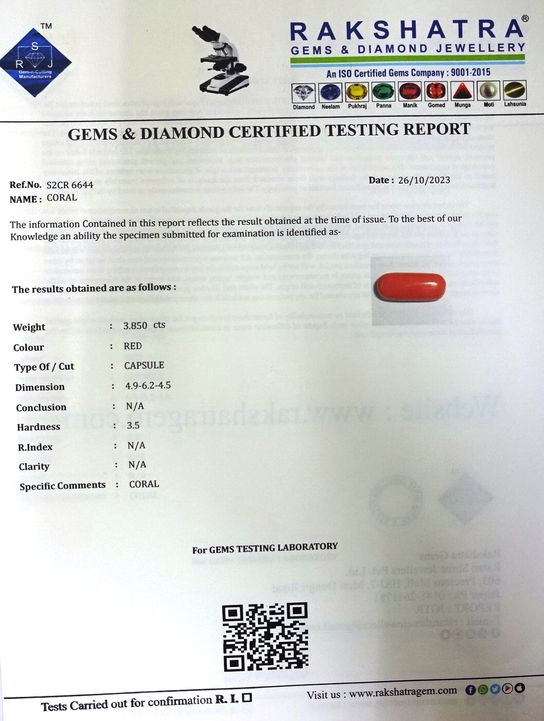 | WEIGHT: | 3.85 CTS |