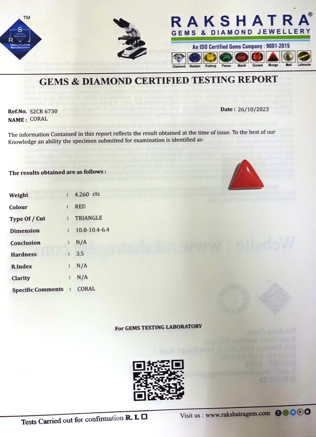 | WEIGHT: | 4.26 CTS |