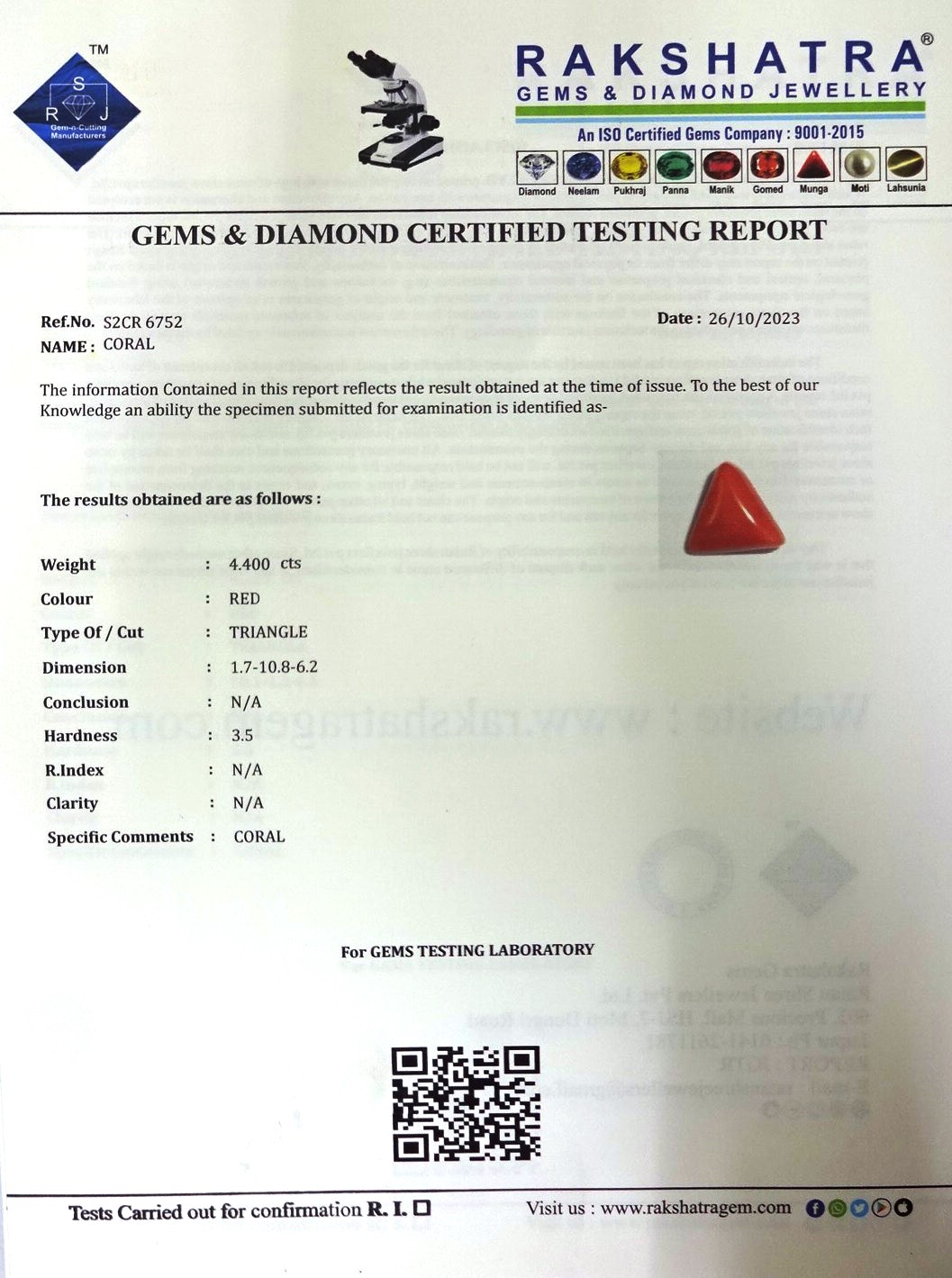 | WEIGHT: | 4.40 CTS |