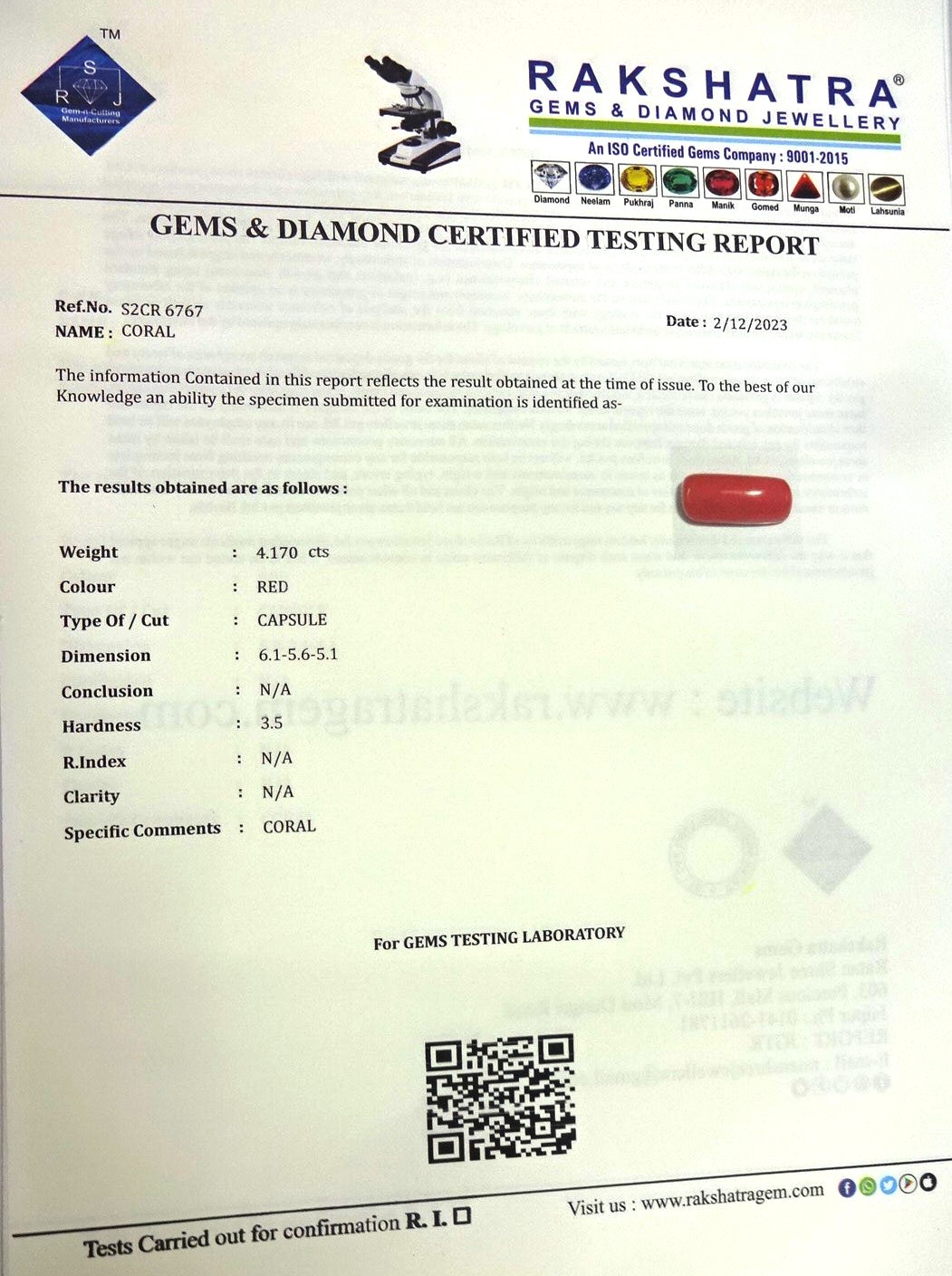 | WEIGHT: | 4.17 CTS |